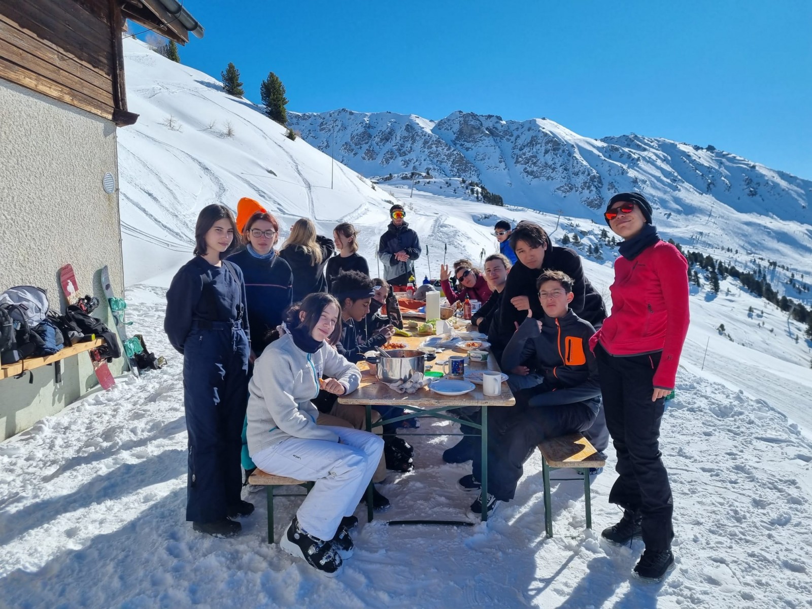 A l’ordre du jour : profiter des kilomètres de pistes que propose le magnifique domaine de Chandolin et St-Luc. Pour faire une pause ou pour pique-niquer, le groupe pourra se ressourcer sur la terrasse du chalet et respirer le grand air des montagnes en contemplant le paysage.